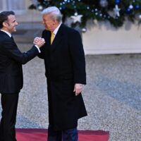 President-elect Donald Trump and French President Emmanuel Macron shared a handshake outside of Élysée Palace and on the red carpet on Saturday ahead of the nation’s celebration of the …